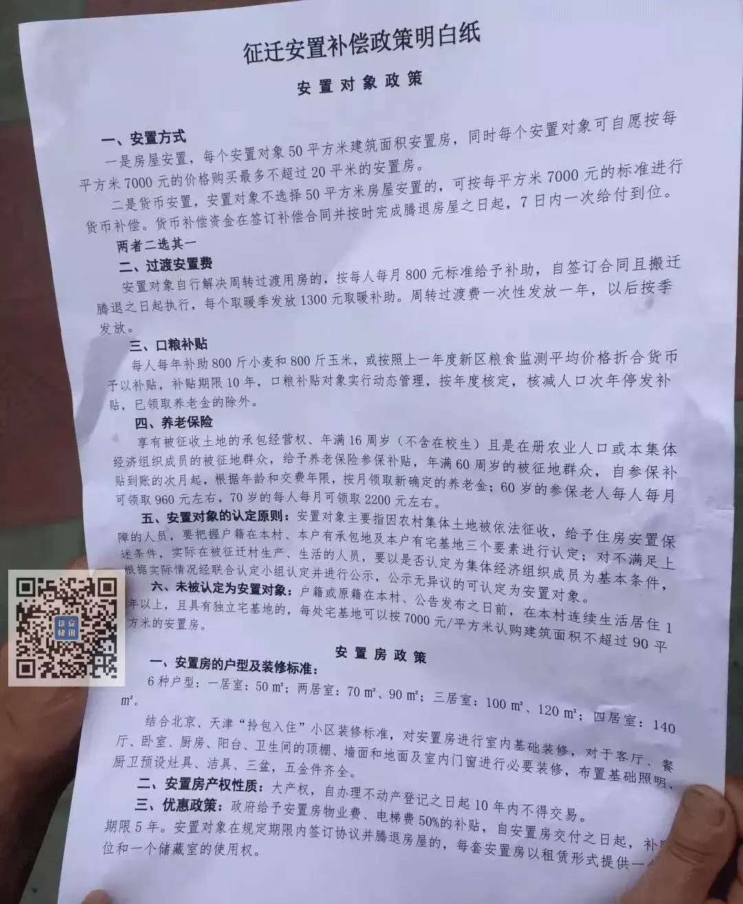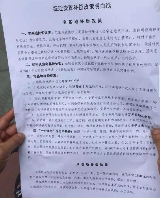 征迁安置补偿政策明白纸
