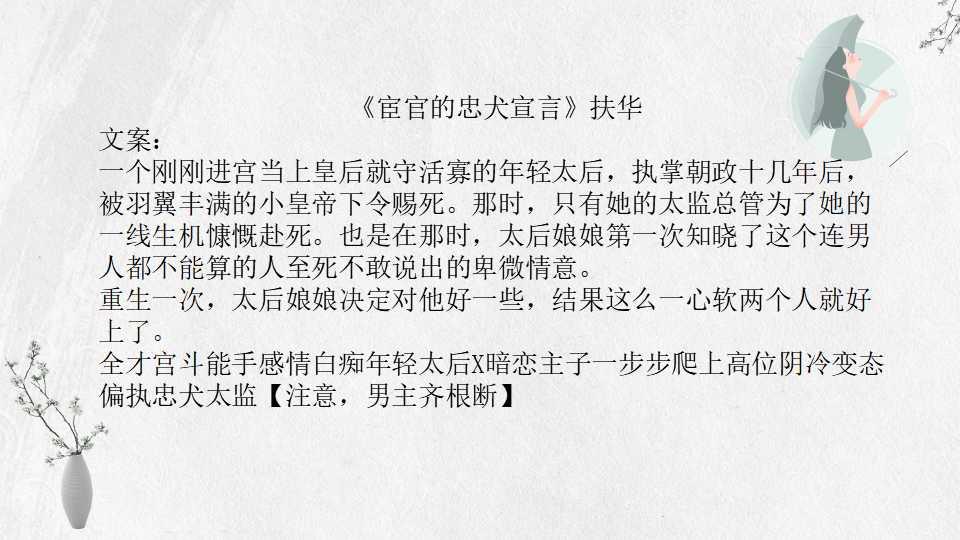 8、 《宦官的忠犬宣言》扶华 36万字 BG 完结
