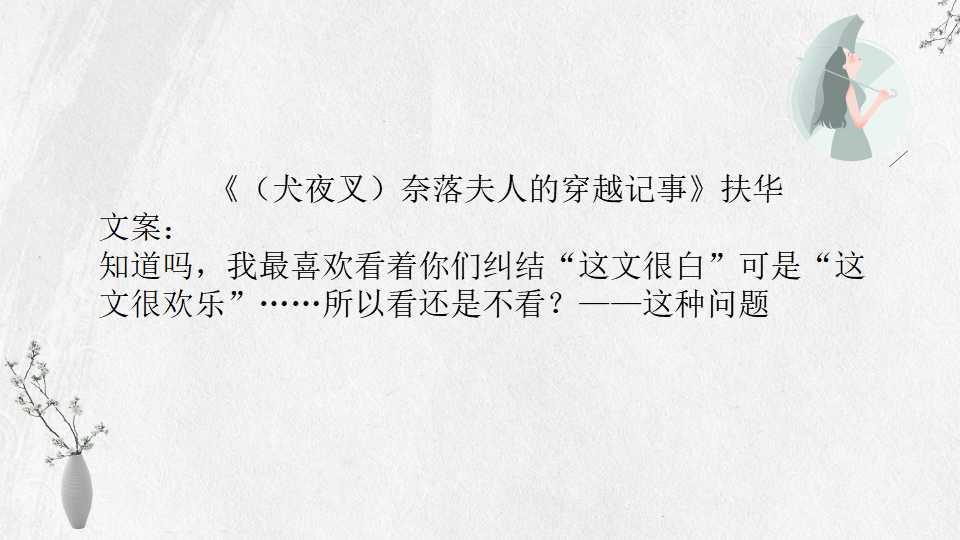 20、 《(犬夜叉)奈落夫人的穿越记事》扶华 17万字 BG 完结