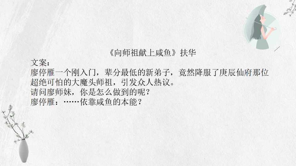 3、 《向师祖献上咸鱼》扶华 32万字 BG 完结