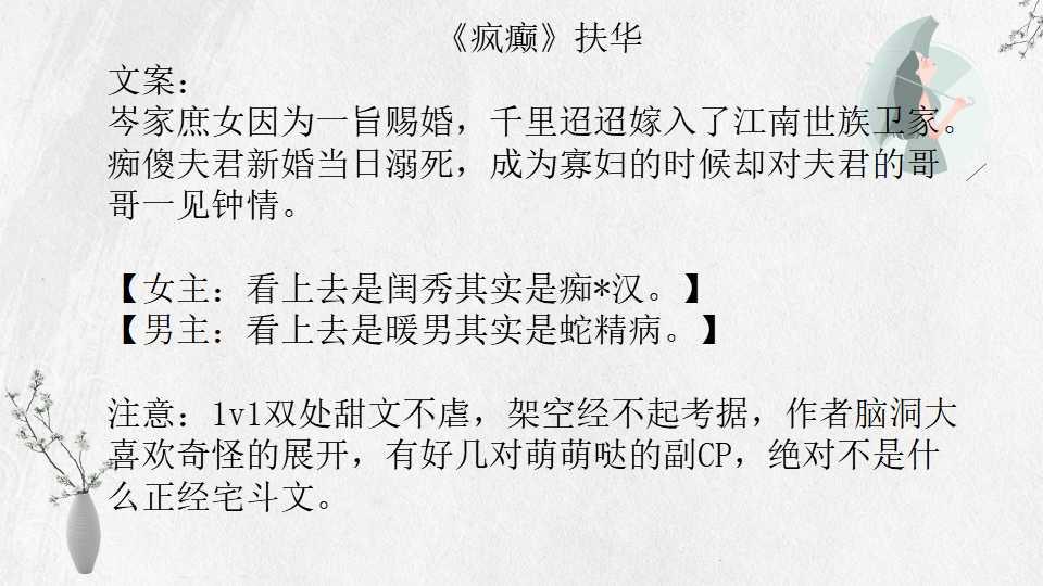 17、 《疯癫》扶华 25 万字 BG 完结(又名《画堂朱户》 )
