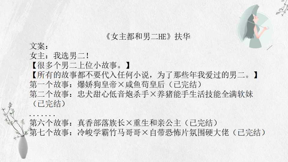 4、 《女主都和男二HE》扶华 68万字 BG 完结