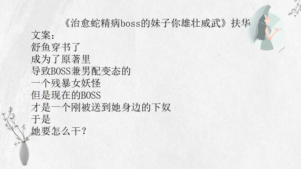 12、 《治愈蛇精病boss的妹子你雄壮威武》扶华 38万字 BG 完结