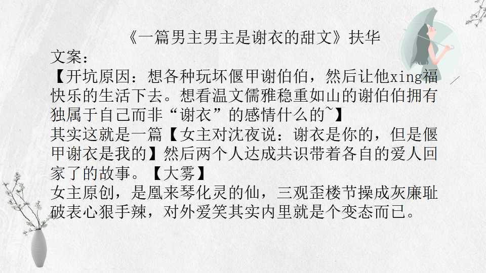 25、 《一篇男主男主是谢衣的甜文》扶华 13万字 BG 完结