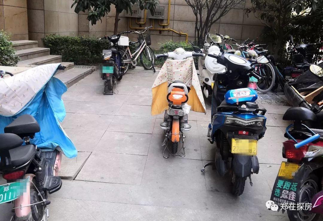 王府一号小区内设置了地上停车位,电动车随意摆放在单元门口!