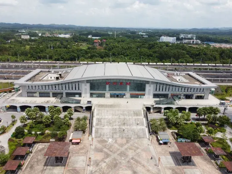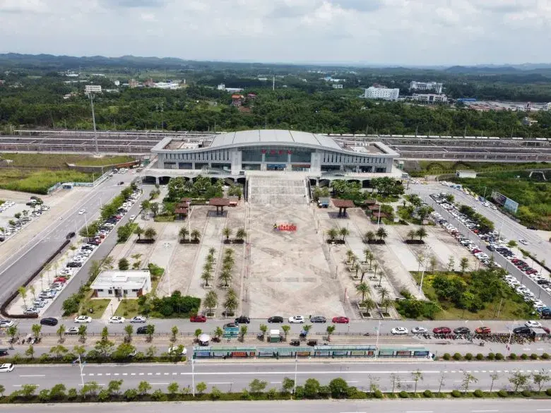 2020年钦州东站,配套的停车场,候车楼,转运中心,各种绿化、商店等等设施应有尽有