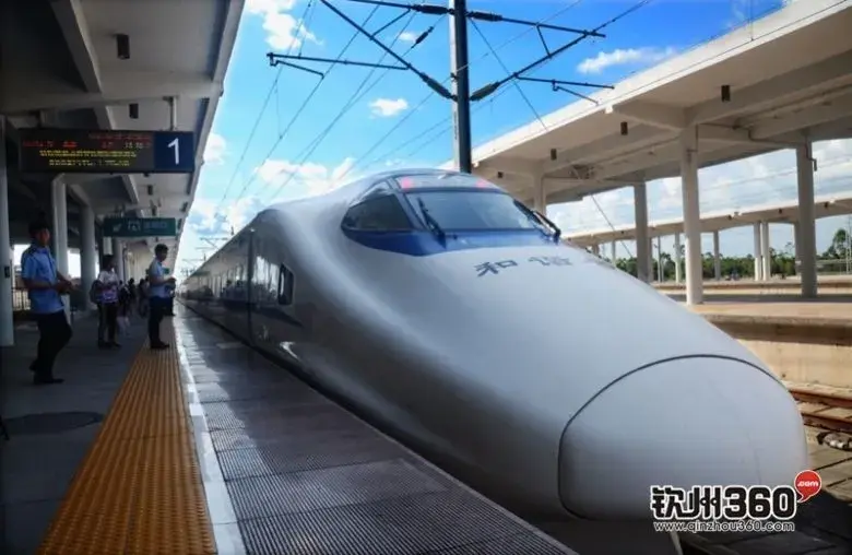 2014年12月,投入使用将近一年的钦州东站,一台动车驶进月台,乘客正在等车