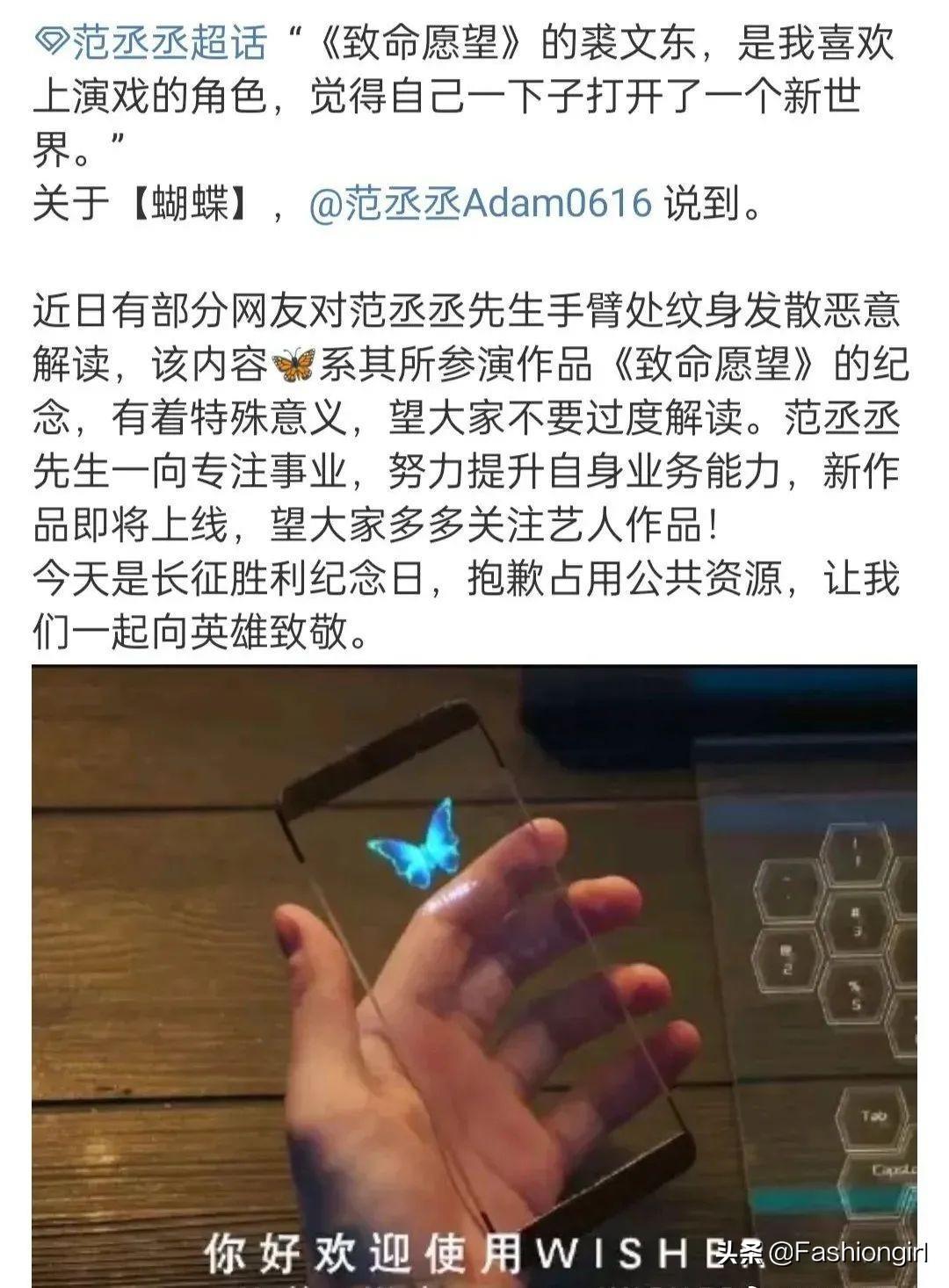 这事儿的起因其实挺简单的,就是范丞丞在胳膊上突然纹了几只蝴蝶(咱也不知道一个想当演员的人为什么要纹这么显眼的纹身,总觉得会影响拍戏)。