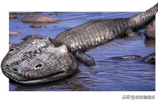 我们延续着祖先留给我们的独特技能,我们可以同时生活在陆上和水中,我们一开始靠捕食水中的鱼虾生存,我们头上长有十字交叉的感知槽,可察觉周遭水域的任何风吹草动,依靠着嘴里针一样尖尖的牙齿,捕这些小鱼小虾确实很容易。但是好景不长,我们的邻居鳄鱼、乌龟这些大型爬行动物越来越多,而且它们并不友好,更不好对付,我们有点力不从心,我们为了能跟他们一决高下,我们开始向巨大化发展,我们体型最终长到了5米长,重达500千克。但是,长期躲在水中,我们没有进化出强壮的四肢,最终也没办法跟陆地上这些大型爬行动物竞争。