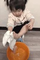 妈妈,你快来看啊,我这脚怎么一直都擦不干呢!