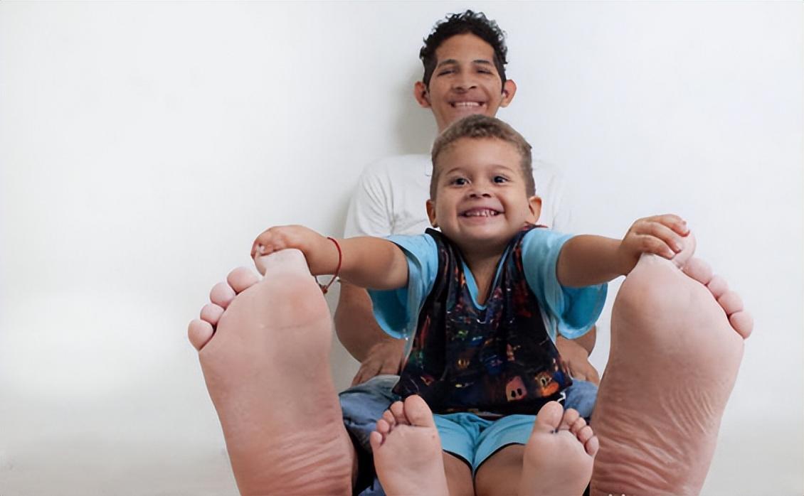 这位男子拥有世界上最大的脚之一,右脚长达40.1厘米,左脚也有39.6厘米长。