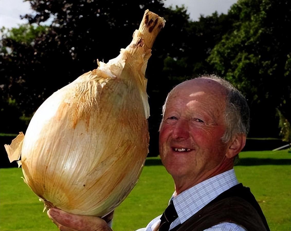 英国有一位名叫皮特·格莱兹布鲁克的老爷爷,他种植的洋葱曾一度创下吉尼斯世界纪录,成为当时世界上最大的洋葱,重达15.42斤,长达0.61米。