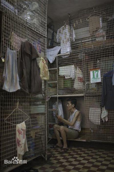 有的人住在棺材房里面。
