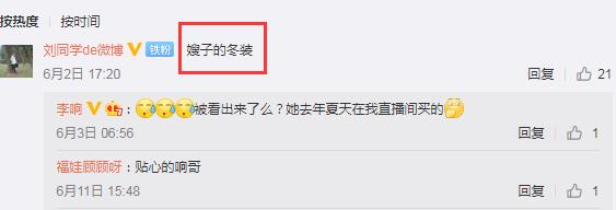 粉丝留言说这是嫂子的冬装,李响也承认了,还趁机给自己的直播间做宣传,说她是在自己的直播间买的。秀恩爱也不忘赚养家钱,李响真会。