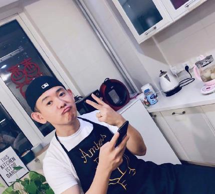 还有一次他晒出了自己带着围裙的照片,旁边的养生壶里还在炖着东西。一看就是在他自己的家里,那么是谁给他拍的呢?答案呼之欲出。