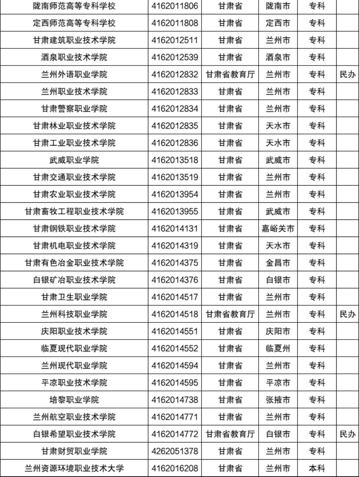一、甘肃单招报考学校(具体以教育厅公布院校为准)