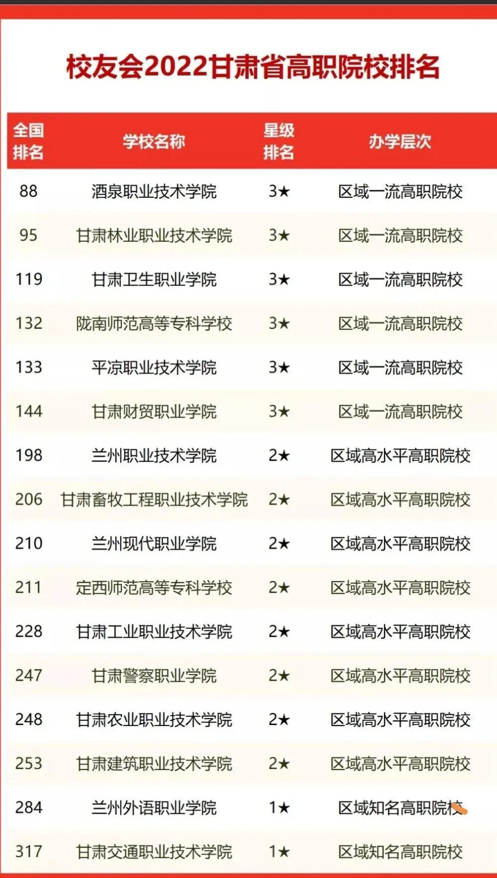 二、甘肃单招公办学校前十排名