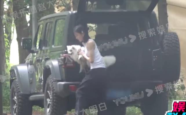 停好车后,朱洁静从后备箱抱出一只白色爱犬,笑脸盈盈一路小跑往附近的草坪走去。眼见好友们已搭好露营帐篷、摆好野炊餐具,朱洁静与爱犬互动一阵后遂将其拴在长椅上,自己则是拿起筷子大口享用美食;此时,一位黑衣男子走来与朱洁静简单交流一番便牵走狗狗。