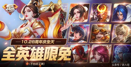 然后我们看看10月28号当天的福利,全英雄限免,包括武则天!这好像是有史以来的第一次,想玩武则天的伙伴记得当天去玩哦,大家体验一下土豪的感觉。
