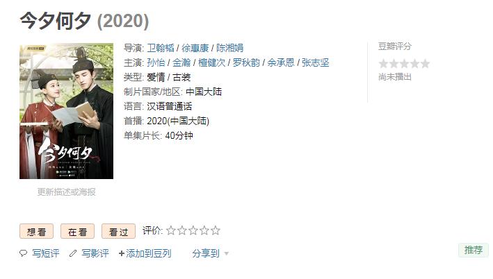 如今他也将迎来新剧,该剧便是《今夕何夕》,由孙怡,金瀚,檀健次,罗秋韵等人主演的古装爱情剧。