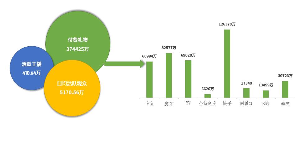 从头榜统计到的数据中,可以看到周期内企鹅电竞、网易CC、B站三大平台付费礼物收益也都只在一亿元上下。本期上榜五位主播的快手,平台总流水以12亿强势领跑,占据全网总流水的三分之一。斗鱼、虎牙、YY则平分秋色,整体差距并不大。