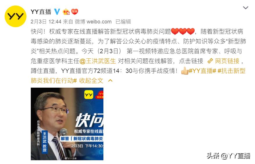 抗击新型肺炎我们在行动,YY疫情直播进行中