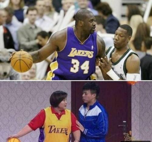 贾玲表演小品穿的球衣上面写着“TAKERS",注意,这可不是湖人队的队名,湖人队的英文是“LAKERS”,一个字母的差别,是不是要蹭蹭热度啊