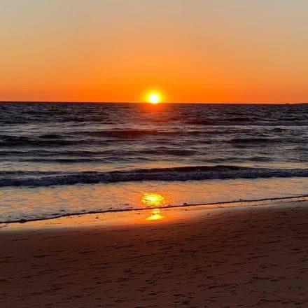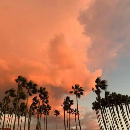 千玺除了拍了温暖的阳光,美丽的蓝色天空,还拍了傍晚的云彩,和海边美丽的落日,太阳已经消失了一半,整个海面都被倒影成了红色,画面实在是太美了,千玺的摄影技术真棒!