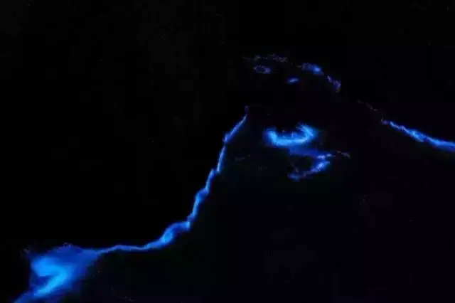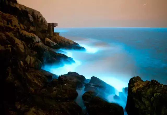 远远看去好像海面升起蓝色的雾气,让整个海岸线犹如浩瀚的银河星空,奇幻的场景让我们错以为身处另外一个星球。