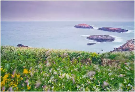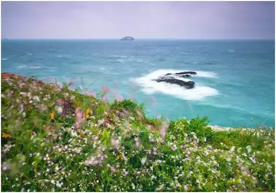 花儿包围了整个海岛,它们似乎都在听着大海的情话。