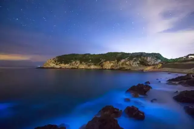 象山海岸线长达800公里,占浙江省海岸线的六分之一。海边竟然出现了“蓝眼泪”奇景!莹莹蓝光勾勒出渔山岛的形状。