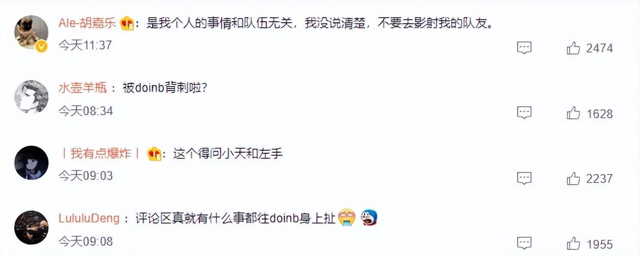 不得不说,Doinb还真是惨,只要队内有什么节奏他立马就要中枪,之前传的中上不合明明已经被阿乐本人自己辟谣了,但还是有很多人坚持Doinb在拆队,阿乐是被胁迫了。这次也是如此,阿乐说的是“最信任的人”,Doinb今年才来LNG,两人也就普通的同事关系,这也能怪在他的头上。
