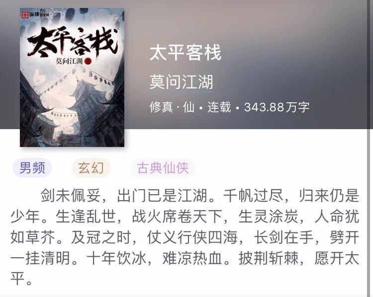 第三本:《太平客栈》 作者:莫问江湖