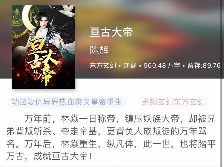 第二本:《亘古大帝》 作者:陈辉
