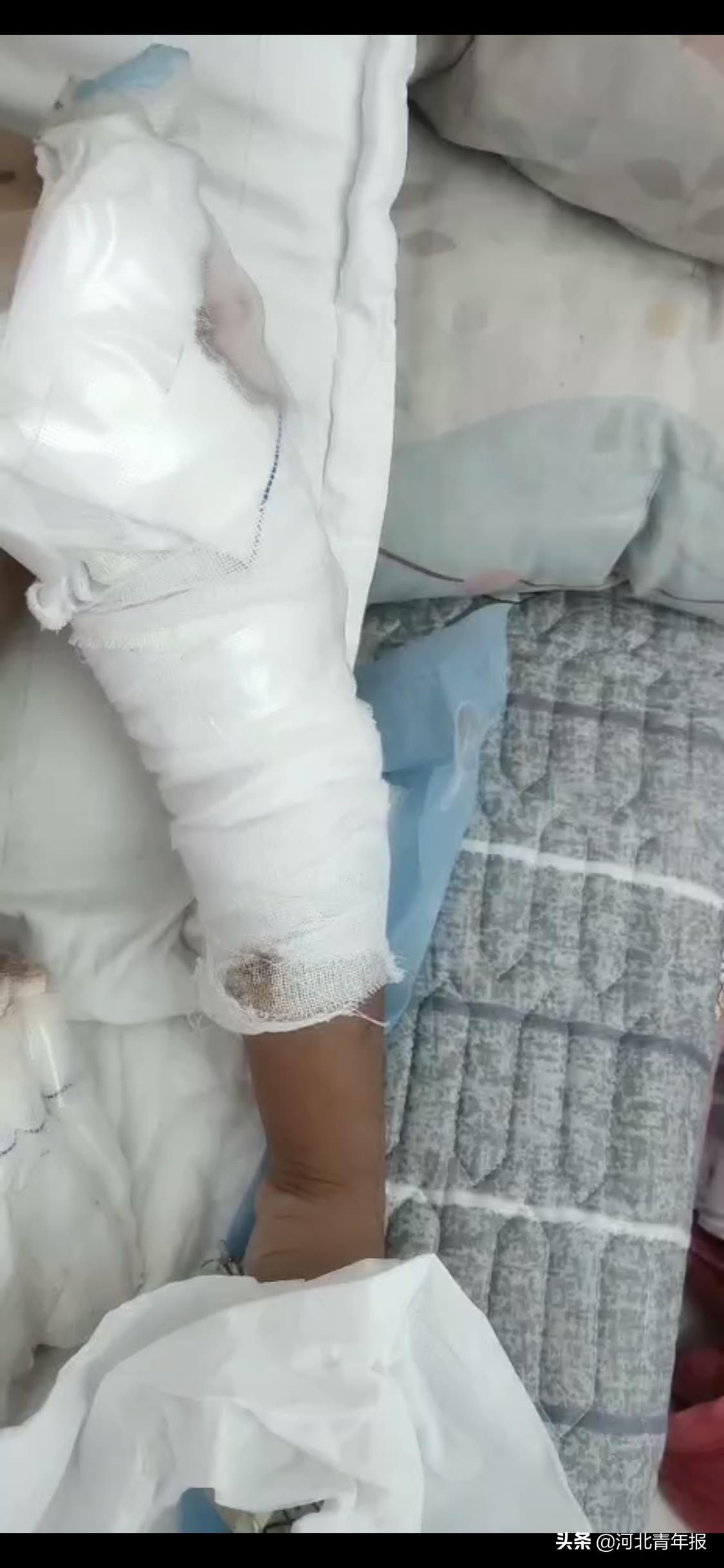10月28日,记者从视频中看到,小奥林躺在病床上,身体已经进行了包扎,但时不时还会传来哭声。