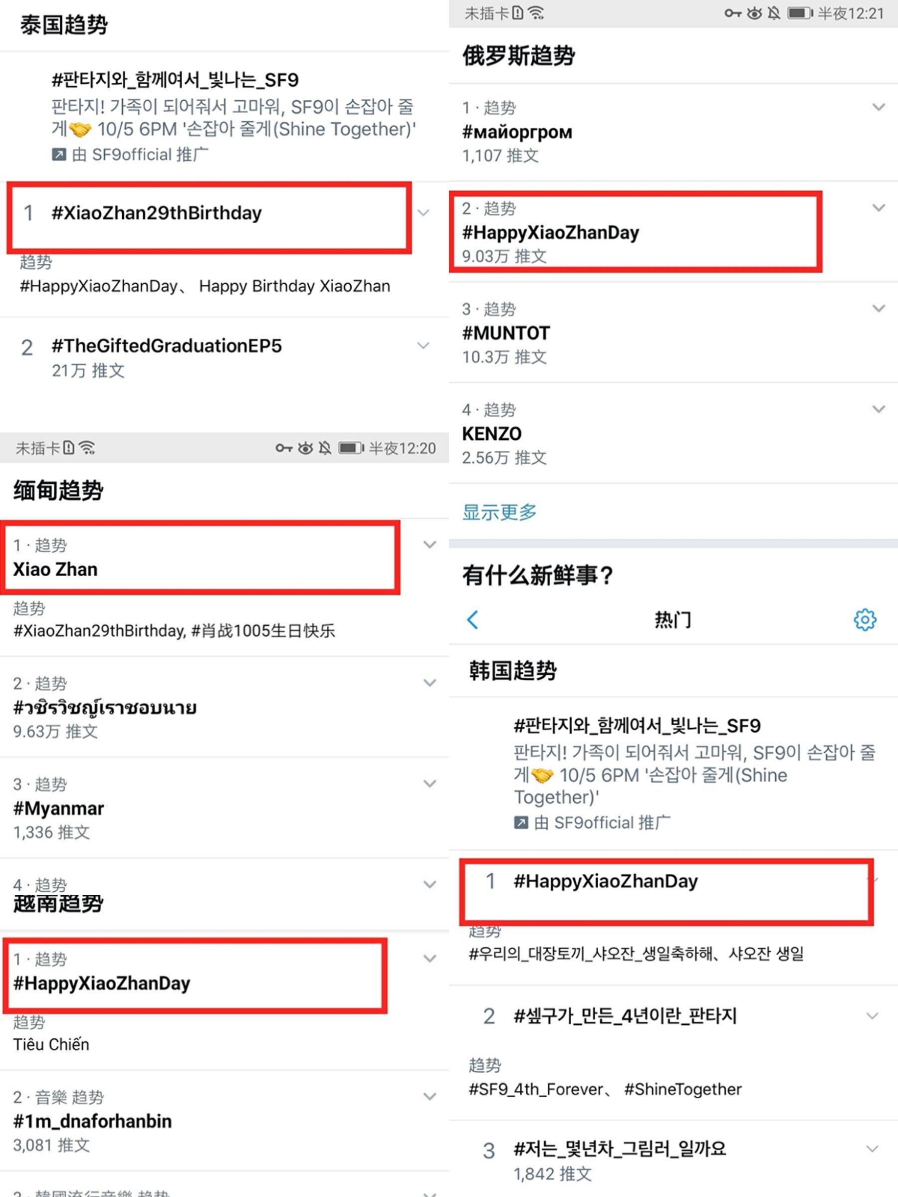 一大早在多个国家肖战的名字和肖战生日的讯息早已经霸占了很多平台的榜单前十,而国内社交平台的榜单还一直在十几盘旋,一起大火的王一博,他的战队超话都排进了前十,就不要说王一博一有什么风吹草动就能上热搜第一了。