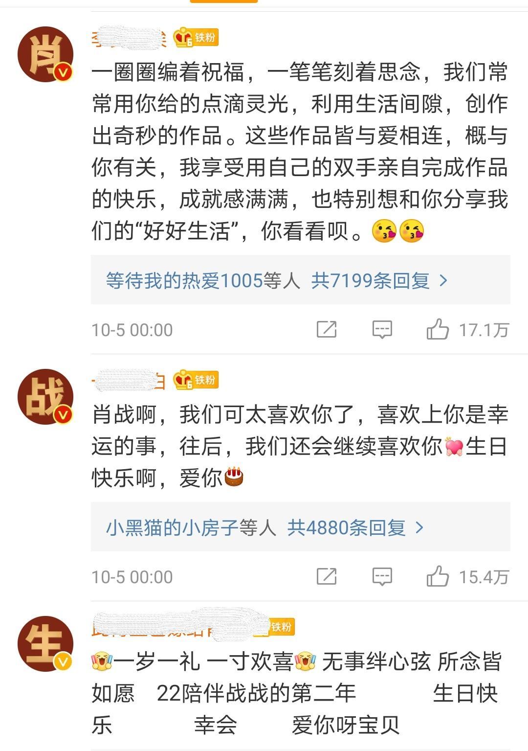 10月5日是肖战的29岁生日,肖战的粉丝们早早就换好了头像蹲点送祝福了,保持好队形,送上编制好的“祝肖战生日快乐”。