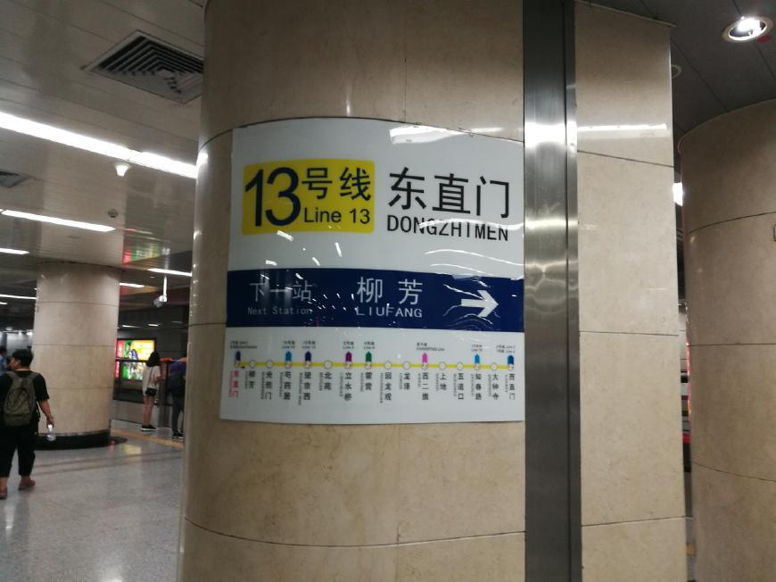 北京地铁东直门站复杂的地图和换乘站牌如下所示。