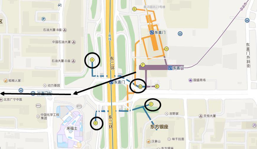 北京地铁东直门站的地图如下所示。