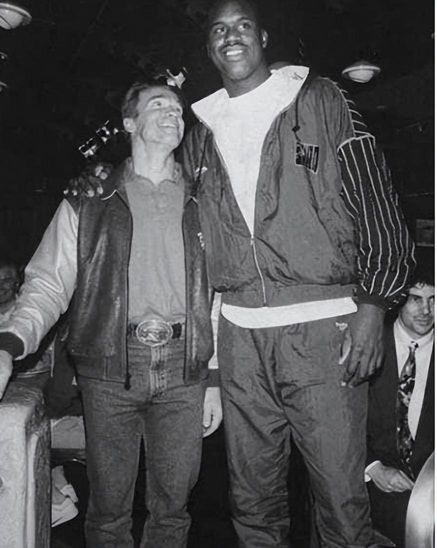 施瓦辛格可是又高又壮,他当年可是健美圈的冠军。这样的肌肉男,绝对是够硬核了,不过遇到阿尼尔,也只能选择低调。估计施瓦辛格都没想到,奥尼尔会如此高大,自己那么高,还是得需要仰视奥尼尔。在奥尼尔身边,施瓦辛格就是一个小兄弟气质。