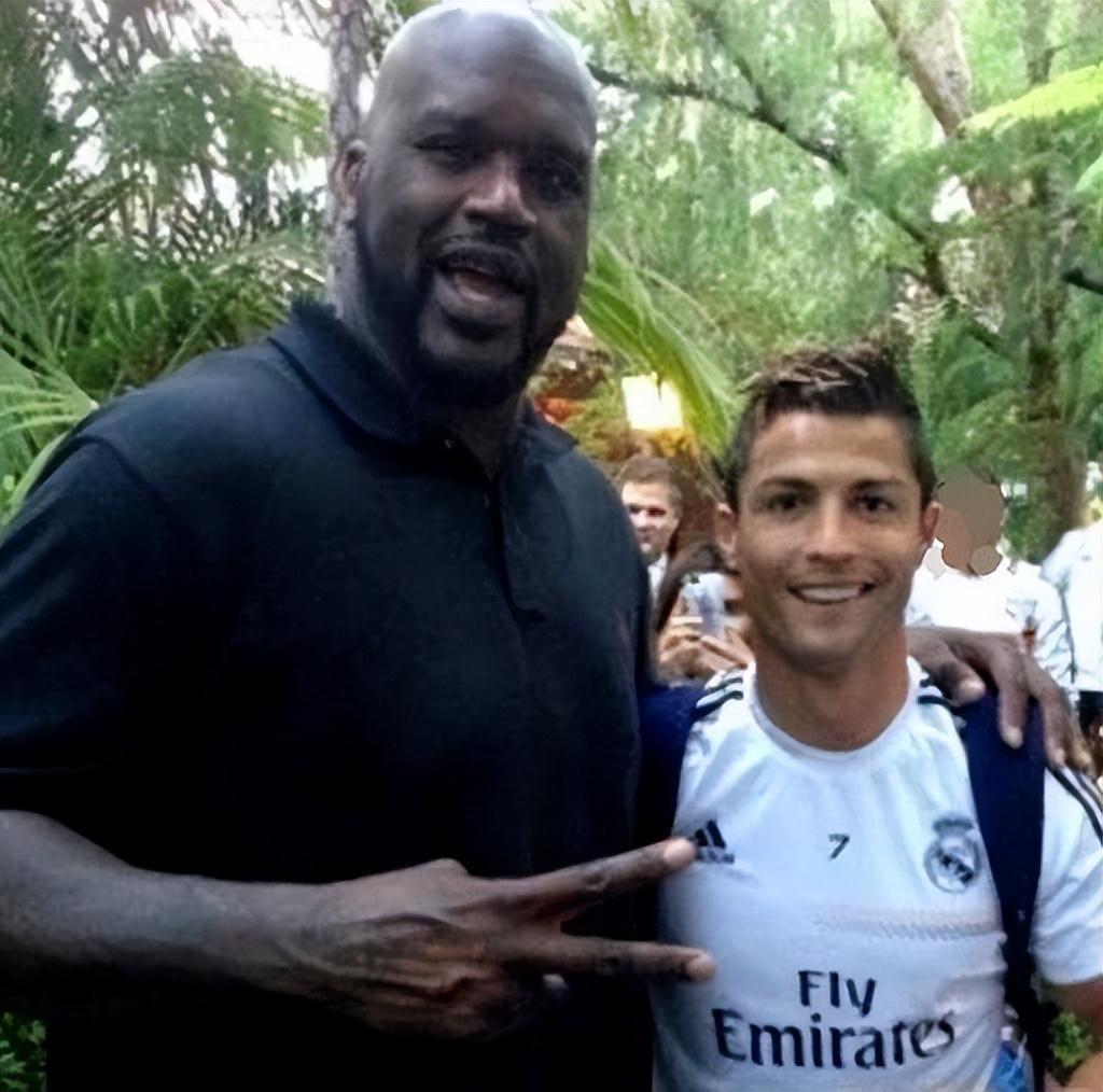C罗真的老当益壮,作为老将他的身材保持得很好。他的肌肉不输年轻球员,这也是他保持状态的关键所在。不过C罗站在奥尼尔身边,直接是被碾压,就不说身高差距了,就两人的身体宽度,那都不是一个级别。