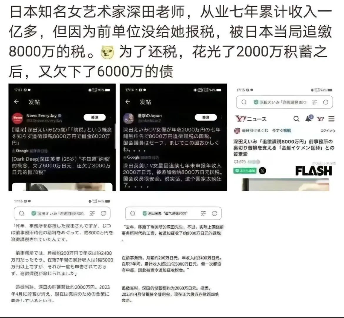 曝光!日本知名女艺术家深田老师被追缴8000万税款,积蓄荡然无存