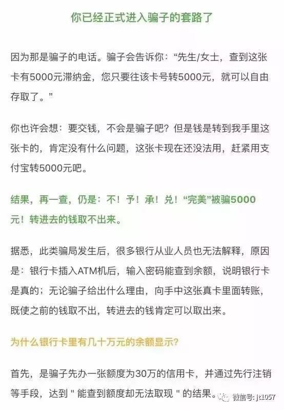 被骗者手中拿的卡是复制出来的一张伪卡,伪卡的磁条信息是之前骗子办理的真信用卡的,因此可以查询信息;伪卡上面的账号是骗子的私人账号,是真实存在的,可以往里面转账。