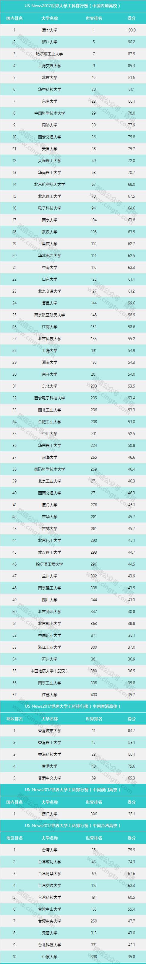 根据USNews发布的2017世界大学工科排行榜显示,在中国内地工科高校排名中,