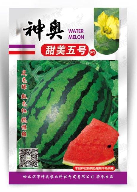 甜美五号甜王西瓜是哈尔滨市神奥农业科技开发有限公司培育的中早熟品种高品质甜王,大果形双红瓤开花到成熟30天皮色翠绿短椭圆形,覆盖墨绿色锐齿条,中心糖度14单果重9千克以上最大可达到15公斤,果皮硬不易裂果,不空心不倒瓤,耐运输。想要购买或者了解其他优秀种子可以手机下载种子库app。