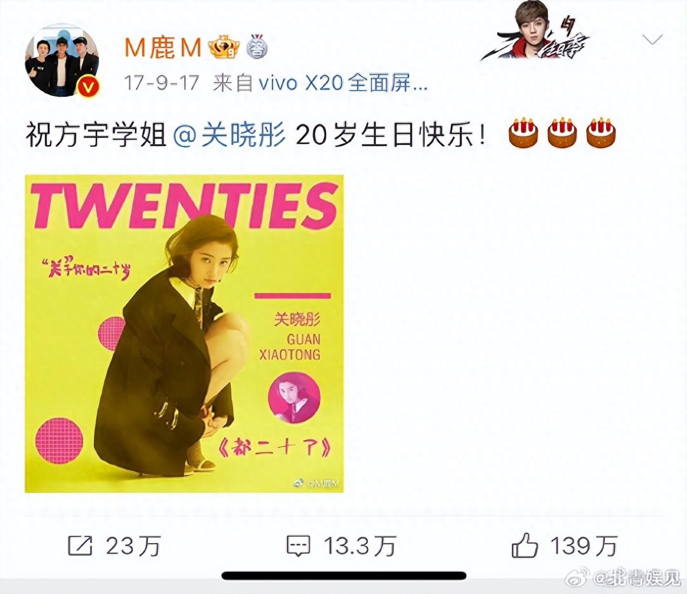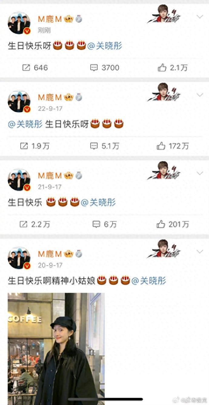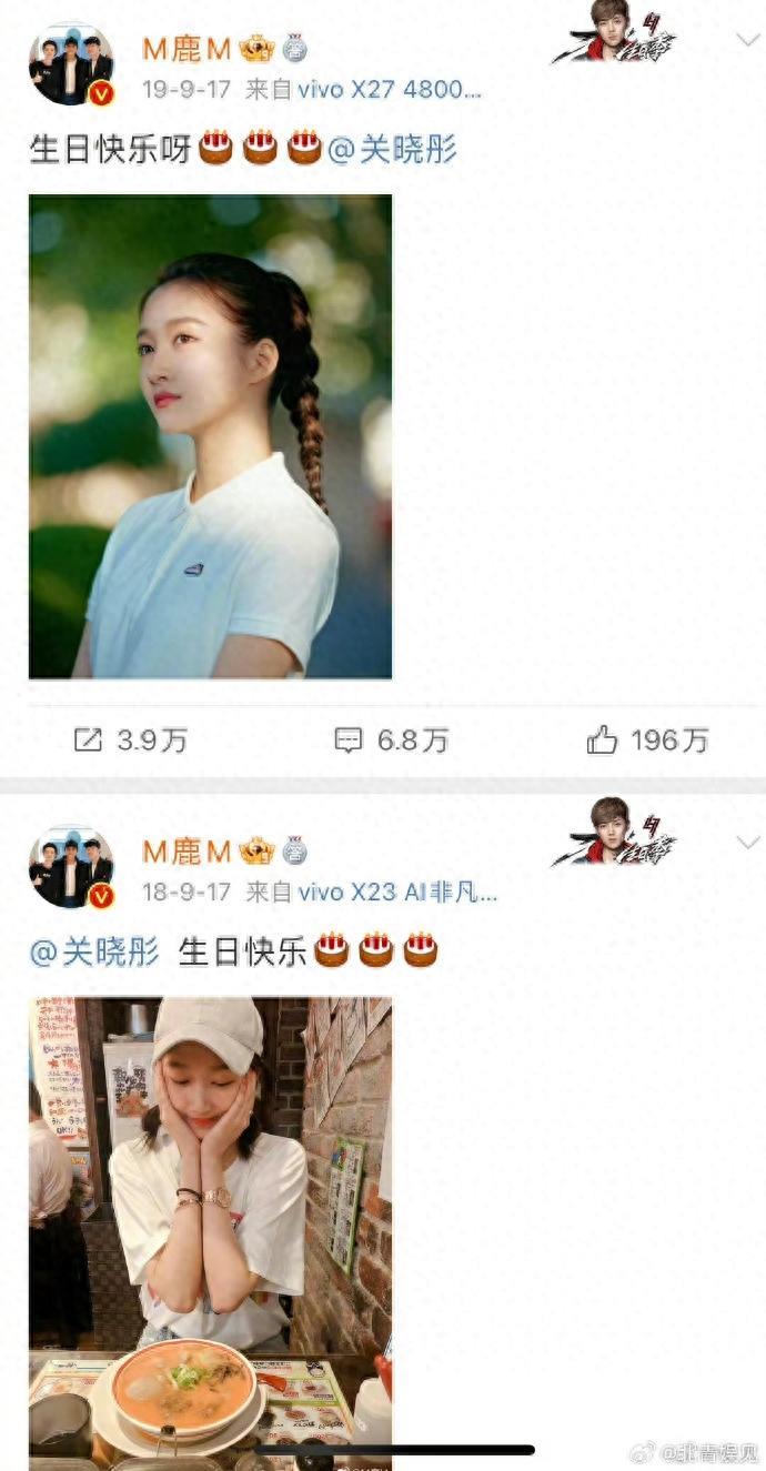 2017年10月8日,鹿晗关晓彤发微博官宣恋情,自此双方每年都会发文为彼此送上生日祝福。