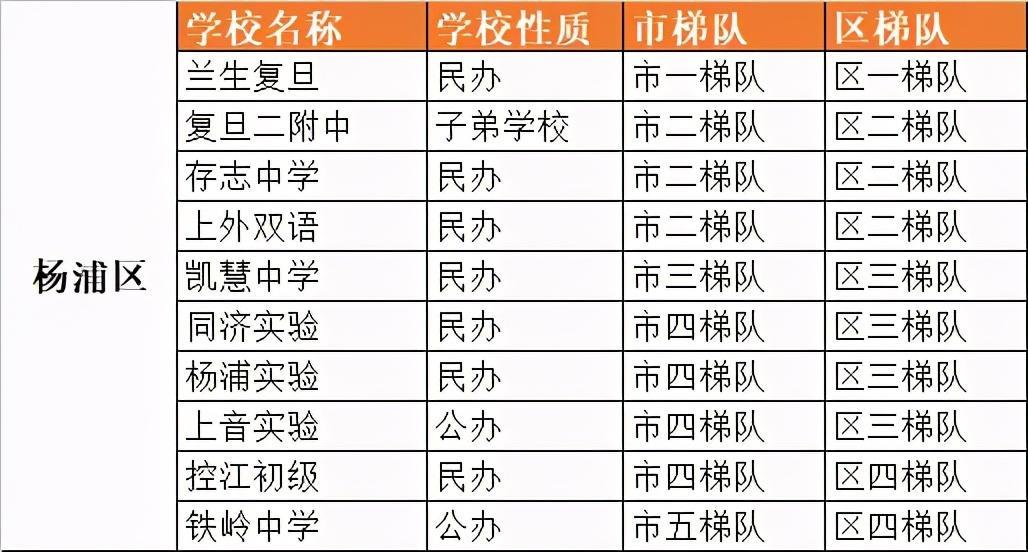 杨浦区初中梯队排名