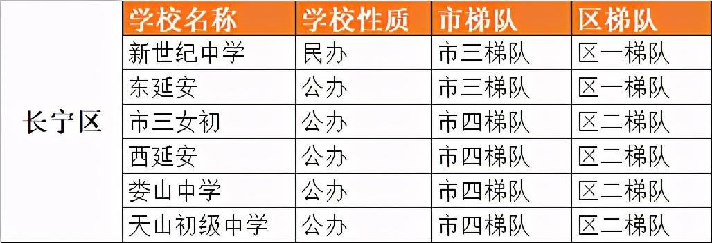 长宁区初中梯队排名