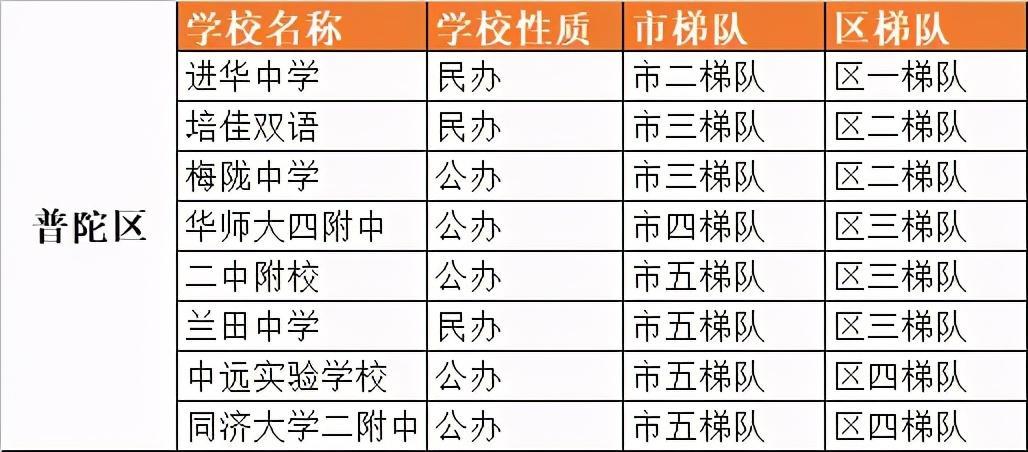 普陀区初中梯队排名