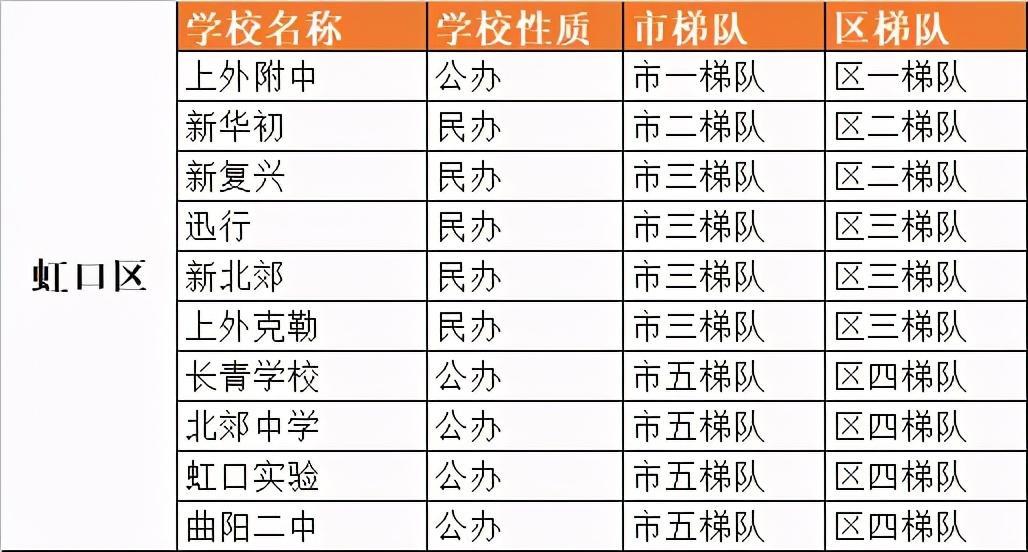 虹口区初中梯队排名